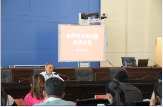 保山市校方責(zé)任保險(xiǎn)培訓(xùn)會(huì)議于2013年9月24日在保山市教育局大會(huì)議室召開。各縣(區(qū))分管校方責(zé)任保險(xiǎn)工作局領(lǐng)導(dǎo)、負(fù)責(zé)校方責(zé)任保險(xiǎn)工作的業(yè)務(wù)人員、市直各校分管校方責(zé)任保險(xiǎn)工作校領(lǐng)導(dǎo)、負(fù)責(zé)校方責(zé)任保險(xiǎn)工作的業(yè)務(wù)人員、市教育局辦公室、安全科和基教科有關(guān)人參加了此次培訓(xùn)。我公司業(yè)務(wù)部、重點(diǎn)客戶部經(jīng)理參加會(huì)議,并做了培訓(xùn)。培訓(xùn)內(nèi)容包括:自然災(zāi)害應(yīng)急處理能力培訓(xùn)、學(xué)校安全事故案例分析、學(xué)校食品安全監(jiān)管培訓(xùn)、校方責(zé)任保險(xiǎn)工作介紹及投保、理賠工作流程。